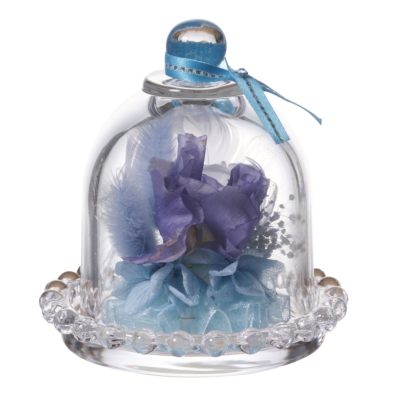 手のひらに収まる小さなガラスボトルに、一輪のお花を閉じ込めました。