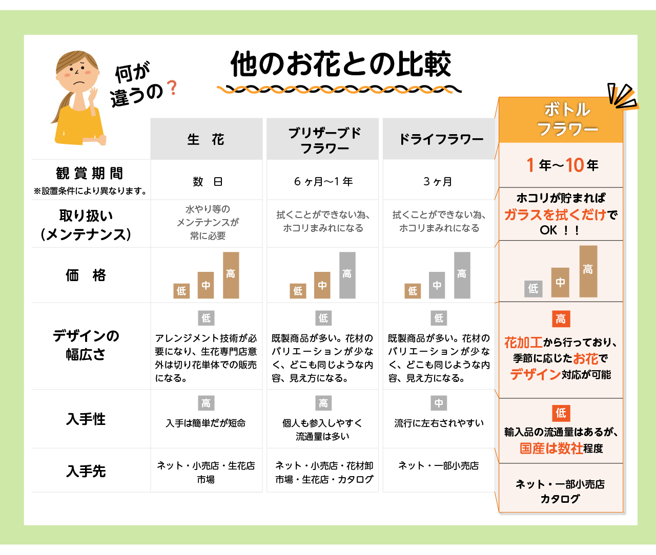 意。お花ごとに表情が異なり、並べて飾ることでコレクション性も楽しめ